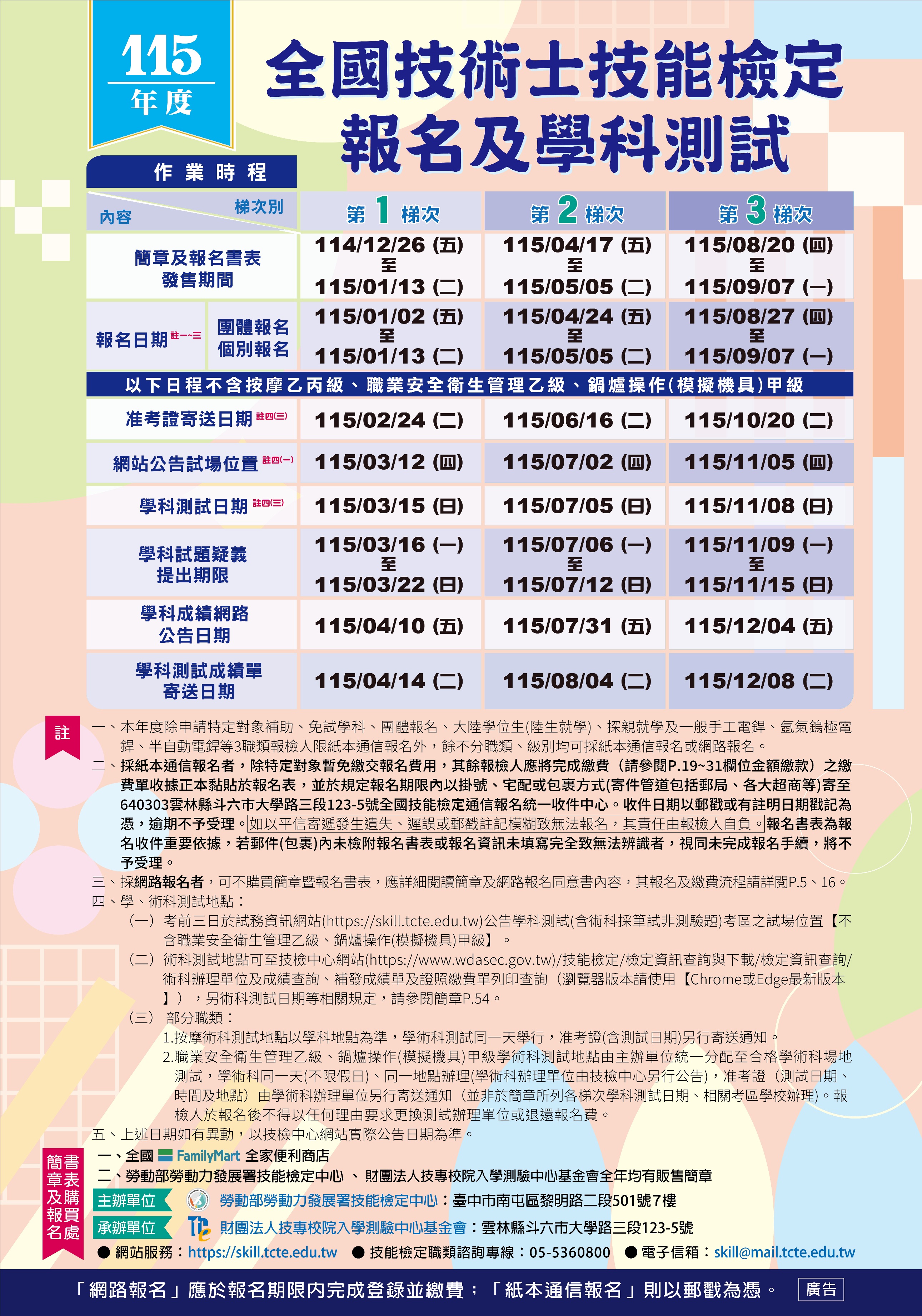 115年度全國技術士技能檢定 > 簡章及相關表件下載